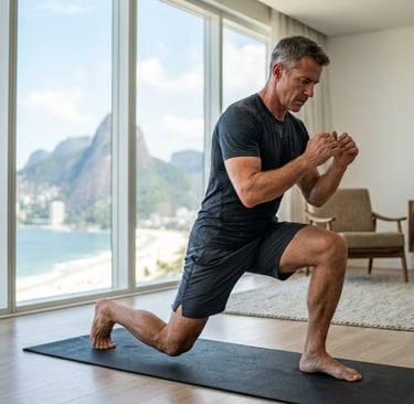 Don't wait for the "perfect" gym. Use the room you’re in. Your body doesn't know you're in a hotel in Rio; it only knows the tension you provide.